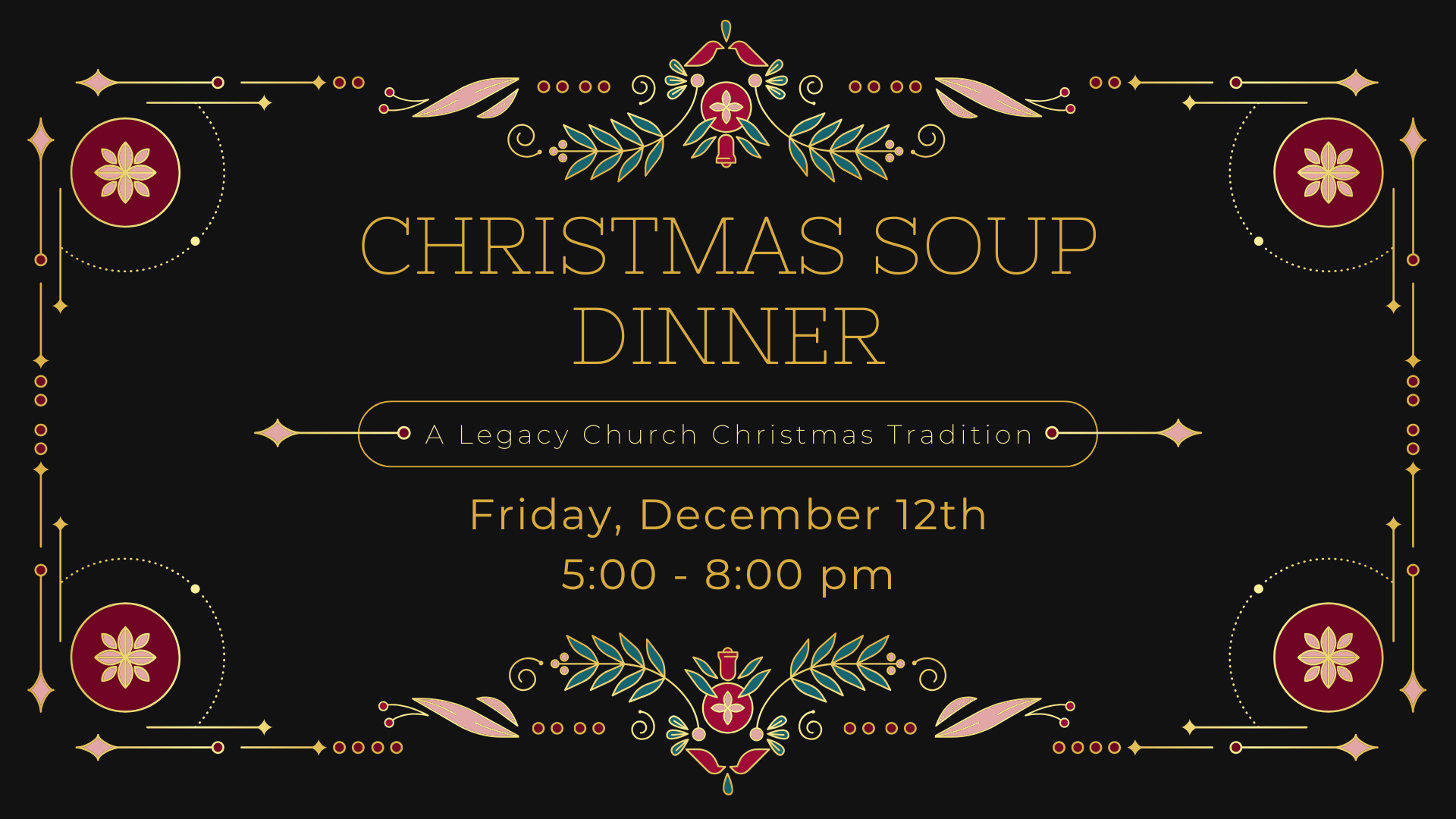 It's not Christmas at Legacy until you have a bowl of Pastor Ben's traditional Lentil Soup. Every year he makes enough to feed an army and together we share an evening of Christmas music, friends, and family over a hot bowl of tasty soup. This year we are extending the invitation to our neighbors and offering hayrides in the neighborhood!